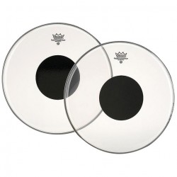 REMO CONTROLED SOUND CLEAR 16" Créées en 1968, les Controlled Sound (CS) Transparentes sont des peaux fabriquées avec un simple-pli de 10 millième d'épaisseur transparent (type Ambassador), avec un renfort rond noir de 5 millième d'épaisseur au centre de la face supérieure de la peau.