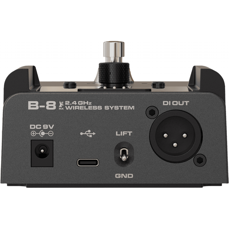 En plus d’un liaison sans-fil professionnelle et robuste, le B-8 est doté de fonctionnalités très modernes et astucieuses, afin de ravir tous les types de musiciens. La fonction activable « Cable Tone » simule le spectre de fréquence de la résistance d’un câble jack, pour un son plus « rond et chaleureux » que les guitaristes désirent parfois retrouver dans leur son, malgré l’utilisation d’un système sans-fil. Un accordeur est également intégré avec différents types d’accordage et d’affichages, déclenchable via le footswitch du récepteur. Ce footswitch peut également déclencher un boost de +12 dB, pour renforcer votre signal ou avoir un boost pour vos solos ! Une astucieuse boucle d’effet permet d’insérer vos autres pédales d’effet dans votre chaine de signal et de renvoyer le signal proprement vers votre ampli. Enfin, la sortie XLR D.I. symétrique est très pratique pour se brancher directement à une table de mixage ou une interface audio, pour répondre à vos configurations studio ou scénique les plus exigeantes.