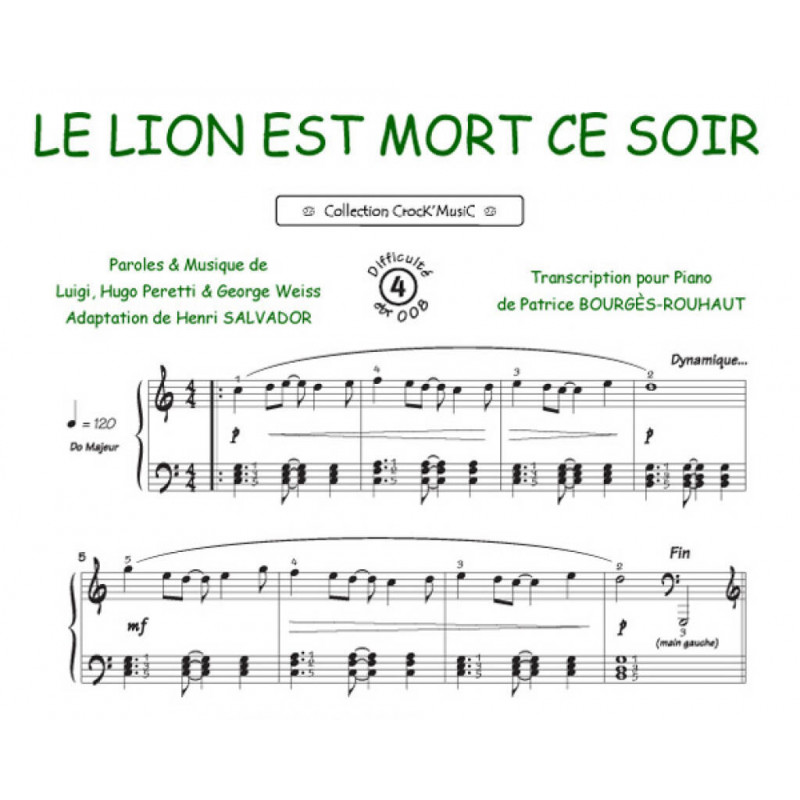 Luigi: Le lion est mort ce soir: (Arr. Patrice Bourgès): Solo de Piano