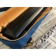 Fermeture par zip double curseur or ineterieur velours ocre et bandouliere marine