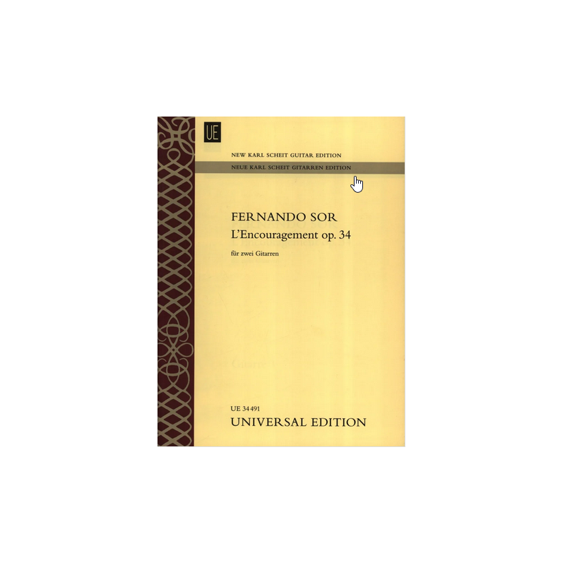 L'Encouragement est, avec Souvenir de Russie, Les deux amis et la Fantaisie op. 54, parmi les compositions duo les plus exigeantes de son époque. La principale source de cette édition est la version éditée par Napoléon Coste (1805-1883). Dans celui-ci, les deux instruments alternent la voix si souvent qu'ils sont effectivement égaux et à mon avis, il est également plus impressionnant musicalement que la version antérieure de Fernando Sor.