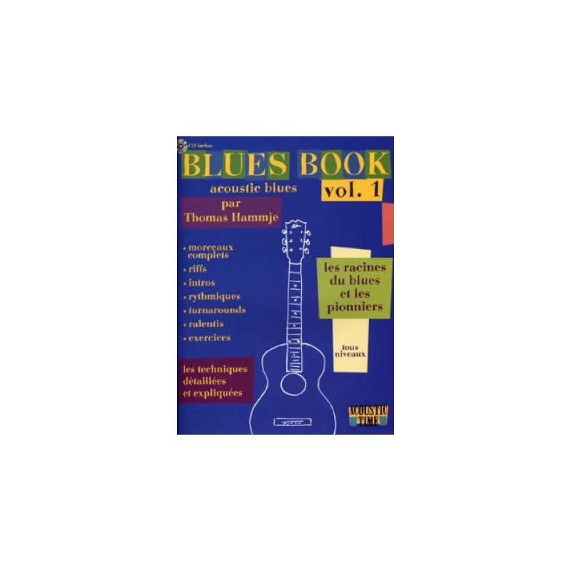 Véritable anthologie du blues acoustique, ce Blues Book volume 1 vous emmène à la découverte des racines du blues et du style des pionniers du genre. Méthode tous niveaux en notations standards et tablatures avec CD. Avec des morceaux du répertoire, analysés et expliqués, le détail des techniques de jeu employées, une comparaison des styles des divers guitaristes, des ralentis, des exercices, des intros, des riffs... Complété par le volume 2, ce Blues Book propose un tour d'horizon très complet du blues acoustique et vous donnera des bases solides pour connaître en profondeur ce style, pour le plaisir de le jouer, tout simplement, et aussi pour vous permettre d'élaborer votre propre blues ! Artistes abordés dans ce volume Mississippi John Hurt, Robert Johnson, Elizabeth Cotten, Tommy Johnson, Blind Blake, Lonnie Johnson, Skip James, Big Bill Broonzy, Mance Lipscomb, R.L. Burnside, Scrapper Blackwell, Charlie McCoy, Mississippi Moaner, Muddy Waters, Lightnin' Hopkins, Leadbelly, Blind Boy Fuller, Robert Lockwood, Blind Willie McTell, Rev. Gary Davis, Blind Willie Johnson,…