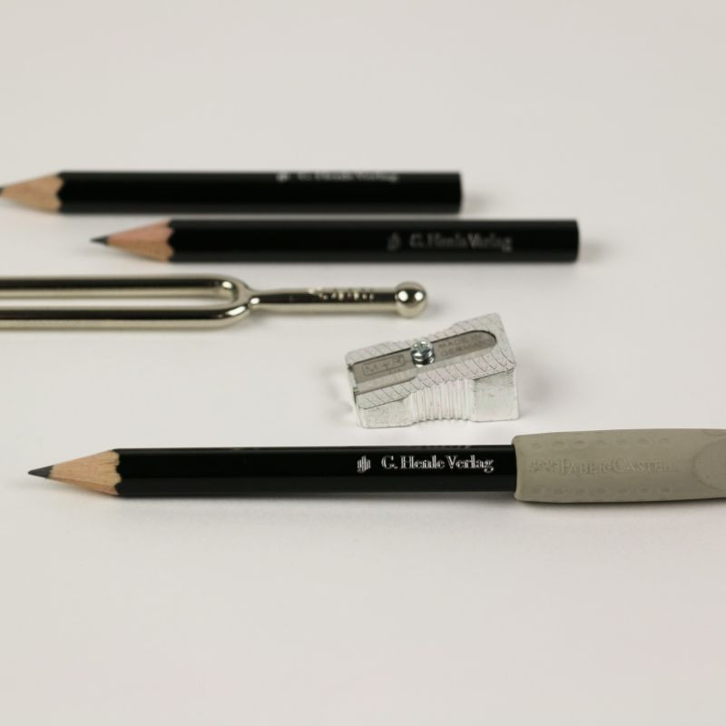 Dans cette boîte en métal compacte, vous trouvez tout le nécessaire pour écrire sur les partitions lorsque vous vous exercez, répétez ou travaillez. Ce solide compagnon pour vos déplacements ou la maison comporte également un diapason. Un article exclusif de la maison Henle.