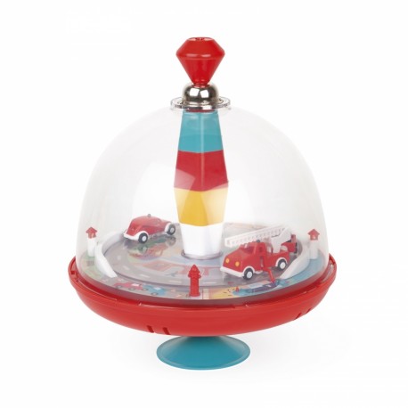 Vite, au feu au feu ! Fais tourner la toupie pour entendre la sirène du camion de pompiers.