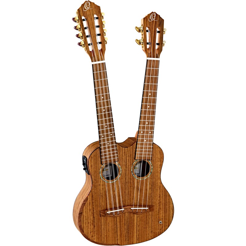 HYDRA, modèle Ténor double manche (4/8 cordes), EQ Ortega Custom, table ovangkol, fond ovangkol, manche acajou, touche & chevalet noyer, binding ABS tortoïse, mécaniques dorées, cordes Ortega, avec housse deluxe.