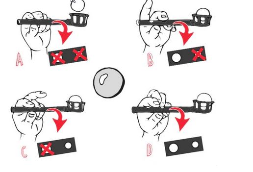 Les deux ouvertures de tailles différentes sur la partie supérieure de la poignée et l'utilisation de deux balles de poids différents offrent huit niveaux de résistance pour l'entraînement. La prise en main est similaire à celle d'une flûte. Avec un peu d'entraînement, le Flow-Ball ULTRA