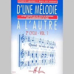 Elisabeth Lamarque : D'Une Mélodie À L'Autre Vol.1 - Partitions Complèment idéal mais non exclusif des ouvrages" D'une clé à l'autre" et " D"un rythme à l'autre", ces ouvrages proposent un choix éclectiques de mélodoes, duos, trios extraits du répertoire du XVIème au XXème siècle.